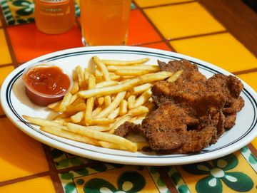 Served with Mexican rice or French fries.